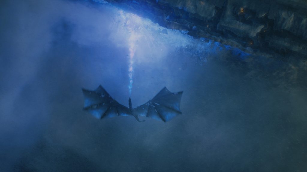 A Fal tetején Tormund és Beric Dondarrion őrködik, amikor megjelennek a Mások, több ezer élőhalott kíséretében. Az Őrség azonnal riadót fúj, az égen pedig feltűnik, amire már mindenki várt. A zombisárkány, hátán az Éjkirállyal, kéklángot okádva, minden probléma nélkül leomlasztja a falat.