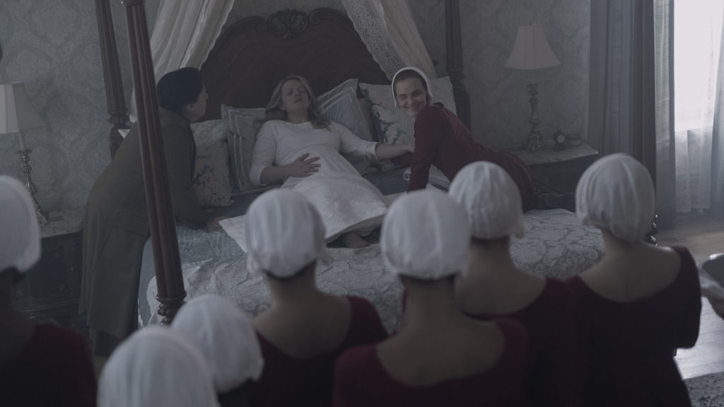 Ezt a gondoskodást viszont June kapja meg Nicktől. Egészen felemelő látvány, ahogy örömittassan, háttérben szolgálólányokkal vonulnak be Fredék rezidenciájára, mintha csak a szülészetre igyekeznének az újdonsült szülők. Az öröm persze hamar véget ér, hisz a gratuláció, a körberajongás és a gyermek nem Offredet illetik. Az egész szülési ceremónia teljesen bizarr, a feleség szülést imitálásával az élen, de erre már láthattunk példát az előző évadban is, így az egyetlen meglepetés számunkra, hogy csak nem akar kijönni az a baba.