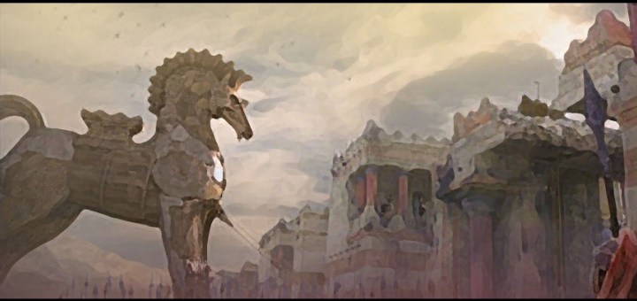 A síkság és a part korántsem volt üres. Mindent elborított a hulladék, amit az elvonuló görögök hagytak hátra. Ócska páncéldarabok, törött holmik, kocsikerekek, vitorlafák, deszkák, a szétszedett hajók darabjai, füstölgő tábortüzek – a háború undorító mocska csúfította el a síkságot. Még lovak is akadtak itt-ott. A fejüket lehajtva, éhesen és szomjasan ácsorogtak, a szél meg-meglobogtatta a farkukat és a sörényüket. Alighanem túl öregek voltak már ahhoz, hogy hazavigyék őket.