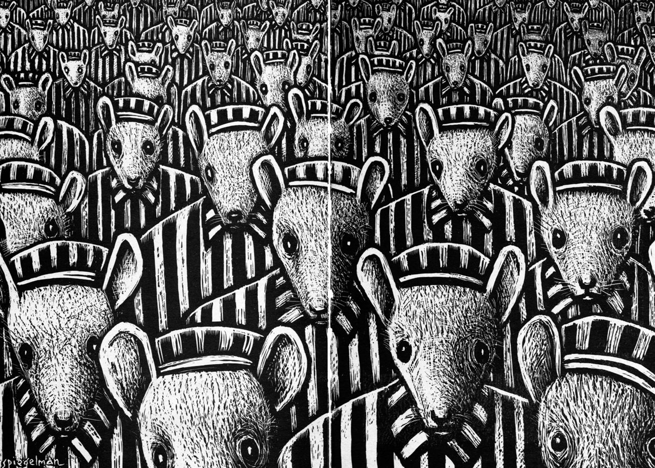 Csak egy igazi géniusznak. Pont ezért válik Spiegelman megkerülhetetlen művésszé. A Maus legalább annyira családregény és önismereti tabló, mint amennyire holokausztdráma. A közel háromszáz oldal jelentős részét ugyanis nem a szerző túlélő édesapjának beszámolója nyomán megelevenedő epizódok teszik ki, hanem magának a folyamatnak a bemutatása, amely során a szerző rögzítette az idősebbik Spiegelman visszaemlékezéseit. Apa és fia beszélgetéseiben tombolnak az érzelmek. Rengeteg a mindkét oldal konok hozzáállásából fakadó feszültség, amelyben folyamatosan jelen van az őszinte szülő-gyermek szeretet is. A saját ceruzája szemében szintén egérfejjel (vagy a nézőhöz kiszóló, negyedik falat átszakító lapokon egér-álarcban) megjelenő alkotó nem csak édesapjával, hanem az alkotói válság és az esetleges hiteltelenség folyamatosan jelen lévő árnyékával is viaskodik. Fokozatosan kikészíti a tény, hogy papája átlagon felüli zsugorisága gyakran emlékezteti a zsidókról alkotott antiszemita sztereotípiára, de még talán ennél is jobban kínozza az a gondolat, hogy nem fogja tudni megfelelően visszaadni a népirtás sokkját úgy, hogy ő maga nem élte át az eseményeket.