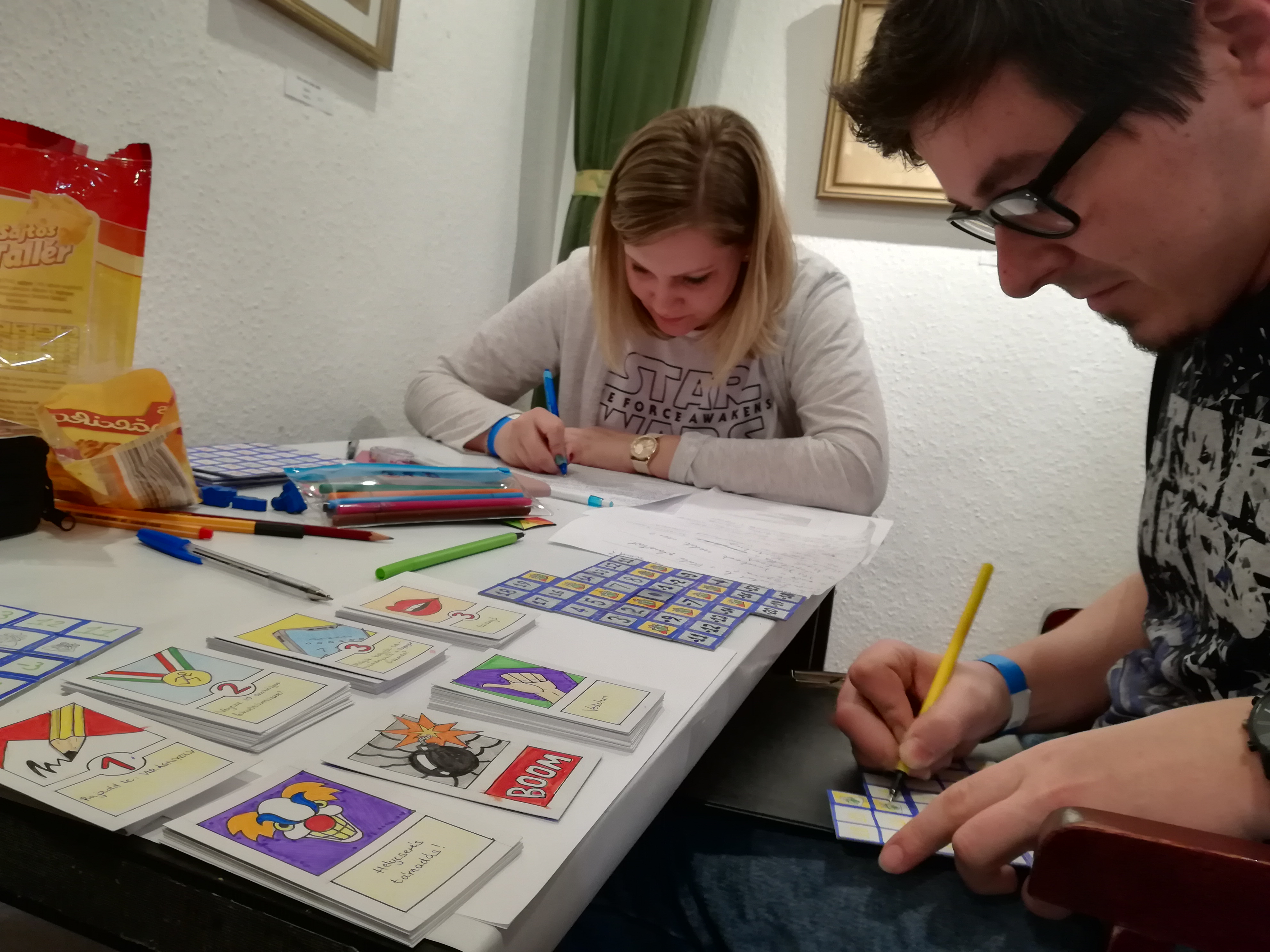 A csapatokat 4 órával a verseny kezdete után kérdeztem az addigi tapasztalataikról, és igencsak vegyes válaszokat kaptam. Volt olyan csapat, aki doboznyitás után egyből belevette magát az ötletelésbe, és már az első pár órában kitalált egy játékot, majd elkezdtek dolgozni a további ötleteiken. Voltak, akiket egyből a pánik fogott el: nem volt például játéktábla a dobozban, ami eleve arra „kényszerítette” a csapatokat, hogy olyan ötlettel álljanak elő, amelyet nem korlátoz a fix játéktábla, hanem nagyobb benne a variációs lehetőség. Szintén „nehezítésnek” bizonyult az a macskafigura, melyet a sajtó munkatársai a szervezők akarata ellenére szavaztak be a dobozba. Bár egyáltalán nem volt kötelező felhasználni, sok csapat mindenképp szerette volna beletenni a játékába a cicát, még ha az nem is passzolt a koncepcióhoz, így maguknak tették még nagyobb kihívássá a versenyt.