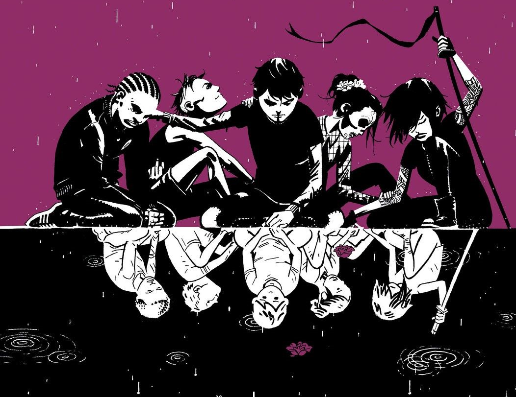 Arról nem is beszélve, hogy a hiányérzetet a sűrűn záporozó események mellett ügyesen elfedi a Királyi iskola növendékei jelképezte valós, korabeli közeg pazar megjelenítése. Alapvetően imádom a nyolcvanas évek kaliforniai hardcore punk szcénáját, a Kölykök a fekete lyukból pedig hibátlanul adja vissza annak esszenciáját. A szubkultúra fiataljainak dühe a rendszer felé, ami magukra hagyta őket, a kitaszítottság érzése ugyanolyan erővel csapnak vissza az oldalakról, mint a Black Flag, vagy a Circle Jerks szövegeiből. A srácok kapitalizmusról, anarchiáról és punkról szóló eszmecseréi és a világról való felfogásuk egy az egyben örökíti át és foglalja keretbe ezt az életérzést. A Haláltanok iskolája valóban királyi leképezése ennek.