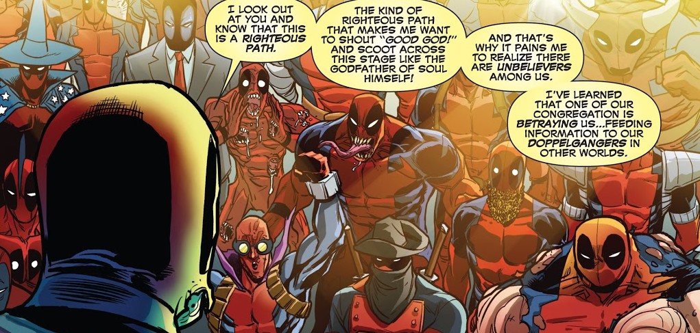 Hasonló a helyzet az Ölégia záróakkordjával is. A Deadpool kinyírja Deadpoolt temérdek alternatív Deadpoolt sorakoztat fel, amelyek közül nem sokat mutatnak meg premier plánban, úgyhogy ha gyorsan lapozol, rengeteg szellemes Pool-változatról maradhatsz le – felbukkan például Mókus Pool, de egyáltalán nem ő a legelborultabb szerzet a buliban. Ám hiába a parádés Deadpool-sereg, a szünetmentes darálás itt már végképp monotonná válik, és még a szokásos, egyébként remekül lefordított önreflexív Pool-poénok sem segítenek az alkotáson.