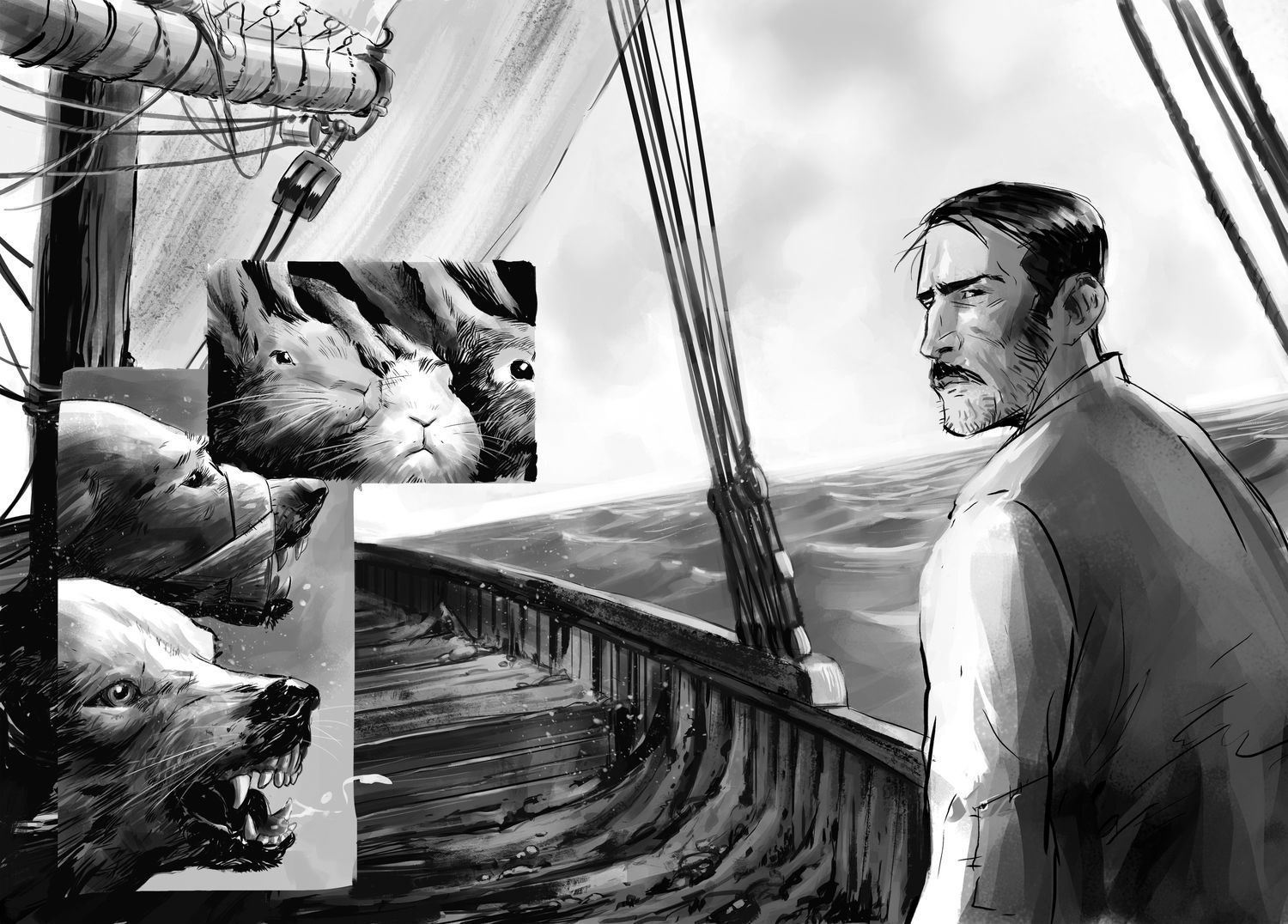 Ezáltal – kiegészülve Prendick az állatokkal folytatott párbeszédekkel – a szörnyek egyszerre lesznek emberiek, szerethetőek és esendőek is, hisz a nekik kijutott sorsot nem kívánták soha. A Galériában található színes oldalakon átélhetően jelenik meg az állathibridek küzdelme az állati ösztönökkel. És ezen képsorokat magunkban felidézve válik a könyv lezárása keserédessé, hiszen ezek a természetellenes úton létrejött lényeket végül mégis a természet veszi vissza. A minden porcikájukban visszataszító rusnya lények valahol nagyon is emberiek, így teremtőjükhöz hasonló elbukásukat csak felerősítik az illusztrációk. Mellesleg ez a gondolat jól összecseng azzal a Frankensteinnénél is pesszimistább hanggal, amit Wells már Moreau bukása során megjelenített: egy ilyen teremtővel a teremtmények is együtt buknak.