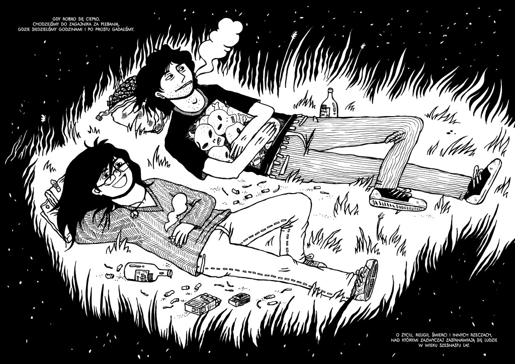 A Szedd össze magad további erősségei – az érzékletes illusztrációk, a felvázolt korkép és popkulturális utalások – kapcsán érdemes megemlíteni egy másik életrajzi jellegű művet: Marjane Satrapi Persepolisát. Satrapihoz hasonlóan Krztoń is fekete-fehér, egyszerű, de a szereplők érzéseit remekül átadó rajzokkal dolgozik – zseniális például, mit tud kihozni egy ceruzafirkából.