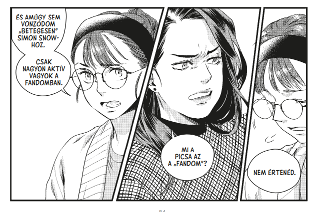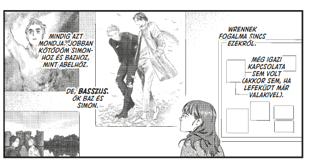 Ez még jócskán várat magára az első kötetben, a hangsúly a sztori elején ugyanis az új élethelyzeten, az első felnőtt élet-élménynek számító egyetem megélésén van. Cath hol frusztráltságon, hol pedig elveszettségen keresztül vezető útjából a mangákra jellemző erőteljes érzelemábrázolások hoznak át sokat, szinte kilépnek a képregény oldalairól.