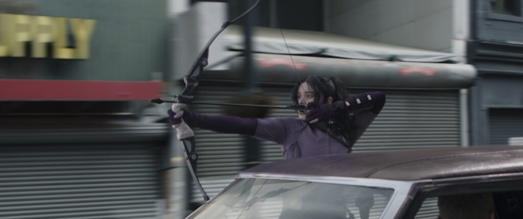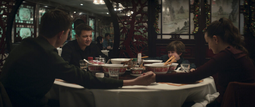 Akárhogy is tekintsünk a Disney+ Marvel sorozataira, az mindegyiknek nagy pozitív tulajdonsága, ahogy az addig kisebb játékidőt kapó karaktereit kezeli. Azonban nem pusztán csak időhúzó kontenttermelésről van szó, hiszen a hősök további útjának kijelölése mellett mélyebb témákba is belenyúlnak a karaktereken keresztül. Legyen ez akár a gyász sajátos feldolgozása a WandaVision-ben, vagy a szuperhősök megélhetési problémái és az első afroamerikai szuperkatonák érdemeinek elhallgatása A Sólyom és a Tél Katonájában. A Sólyomszemben végre Jeremy Renner is nagyobb teret kapott karaktere megformálásában, alakítása pedig a sorozat egyik fénypontja. Bár nem valószínű, hogy Elizabeth Olsenhez hasonlóan díjakra jelölnék a sorozat miatt, de mind a könnyedebb, emelkedettebb, mind a mélyebb érzelmeket közvetítő jelenetekben hiteles és élvezetes tud maradni. Hailee Steinfeld az egyensúly jegyében leginkább a fiatalos bohókás hangulatért felel, és ilyen pillanataiban jobban is működik, mint a komolyabb részeknél. A Fekete Özvegy után pedig itt is tiszteletét teszi Yelena Belova szerepében Florence Pugh, aki simán csak az egyik legjobb dolog, ami mostanában az MCU-val történt. Mindegyik karakternél, de főleg Kate-nél cselekményalakító hatása lesz a családi környezetnek, így a Sólyomszem háttérben meghúzódó témájává a család válik.