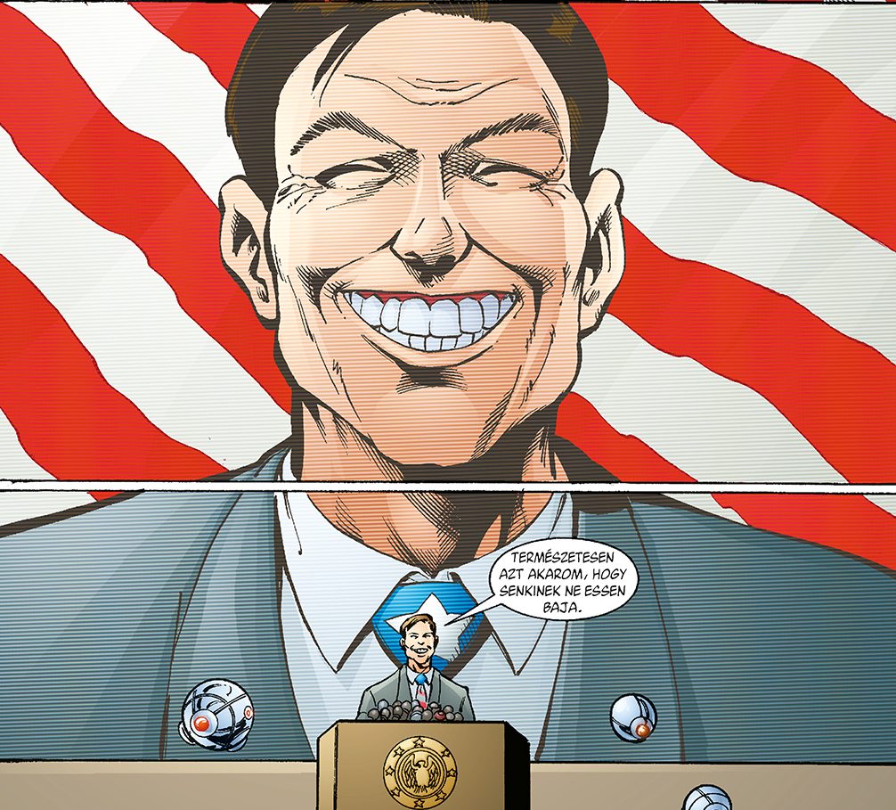 A történet a thriller mellé a végére becsatornázza az akció, illetve a politikai krimi zsánerét is, ugyanis egy természeti katasztrófa hatására Vigyori minden hatalmat magához ragad, és rendeletben folytatja az addig is igen eredményes influenszerkormányozását. E során segítséget persze senkinek sem nyújt, de minden helyszínen elmondja, mennyire sajnálja a történteket. A média csak arról számolhat be, ami az elnöknek tetszik, és amint valamiféle tiltakozásba ütközik a hatalom, a kamerák kikapcsolnak. Habár 2002-es kötetről beszélünk most, a pandémia alatt megkezdődött és azóta is tartó állami médiakontrolt bizonyára senkinek sem kell bemutatni Magyarországon.