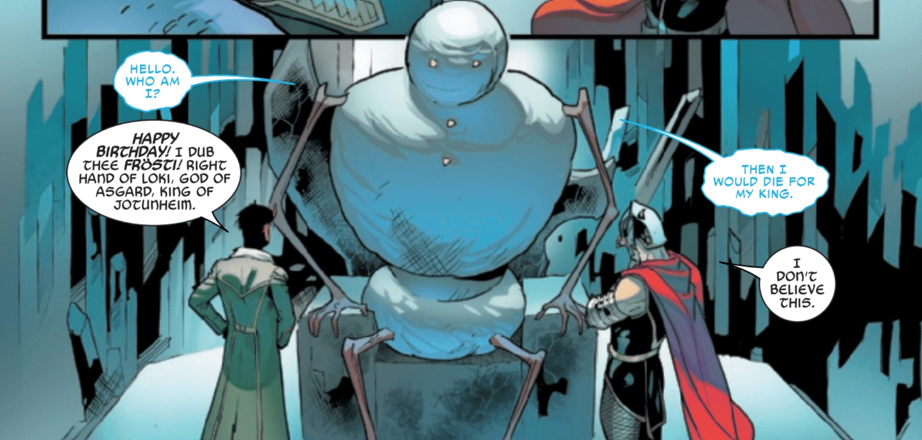 Bár az elmúlt kötetekben tényleg megfigyelhető volt a jellemfejlődés a Jöttünheiminél, ez csak egy-két variáns esetében mondható el a sok ezer közül. A földre pottyant isten címszereplőjének minderre egyetlen válasza van: unatkozik. Így pedig megköttetik az alku, amivel a végtelen történetű Marvel-karakterek közé kerül.