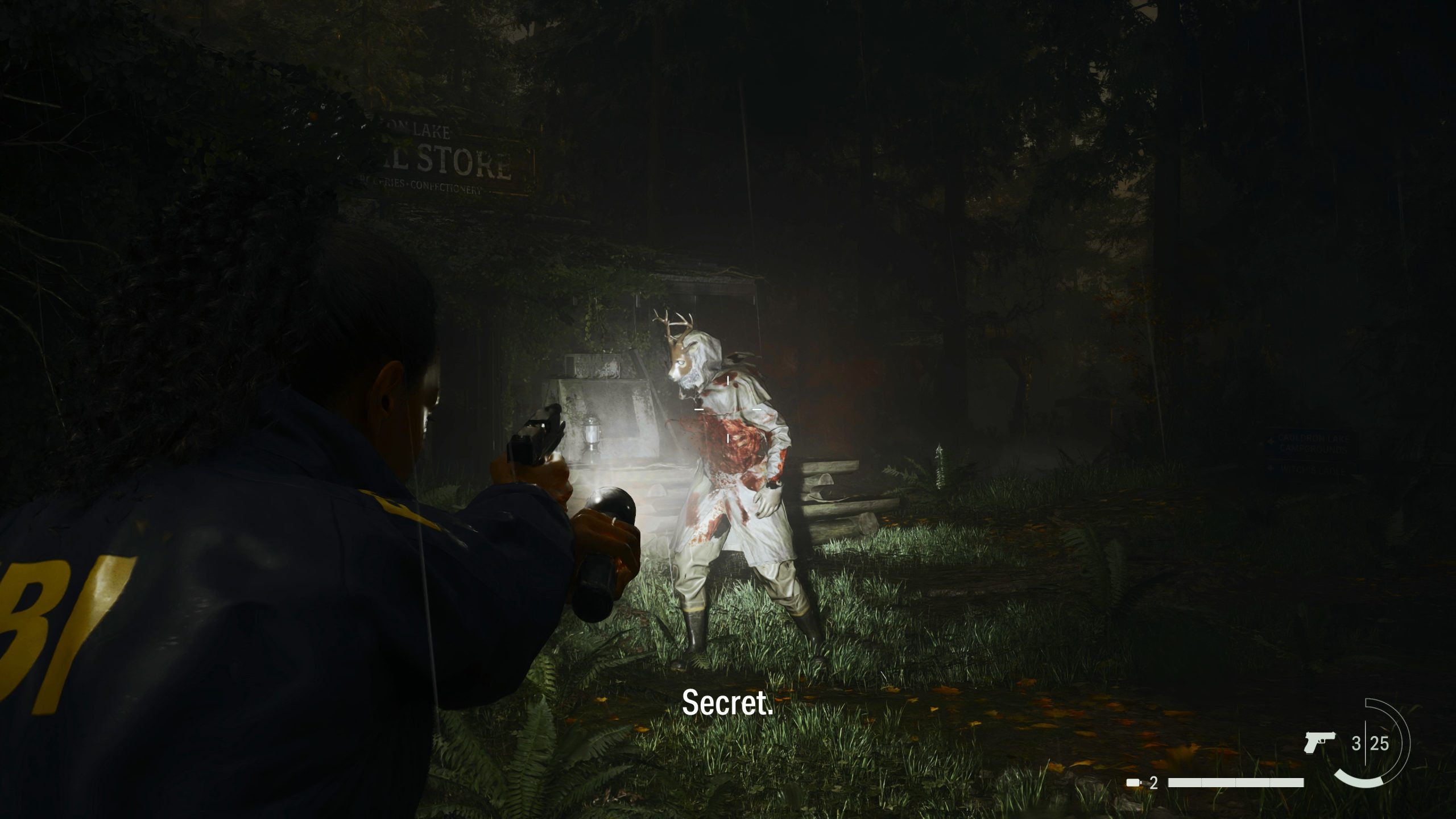 Ismétlem: Alan Wake játék ebből a szempontból is felnőtt. A veszélyes, rejtélyes misztikum végigkíséri a játékost. Hátborzongató a Bright Fallst ölelő Cauldron Lake-i, elárasztott erdő sötétjében, vagy az ott meghúzódó, kihalt, rohadó kávévidámparkban nyomozni Sagával. Ahogy szintén félelmetes az ál New York kihalt, mozgó, motyogó árnyékai között keresni a kiutat. Ellenségeink Saga szálában szektások lesznek, míg Wake szálában a hirtelen és váratlanul materializálódó takenek lesznek. Saga ellenségrepertoárja kicsit színesebb, mert őt irányítva ezúttal már farkasok és egy új, testhorrort idéző „lidércek” is a pisztoly- és puskacső elé kerülnek. Fegyvereink között ott lesz a revolver, maroklőfegyver, két típusú sörétes, illetve a szokásos jelzőpisztoly, jelzőfény és villanógránát. Az ellenfeleinken végre látszik a sebződés, sőt, van, hogy elég erőst lerobban a testükről a hús, de még így is mozognak tovább ezzel téve kicsit horrorisztikusabbá a játékot.