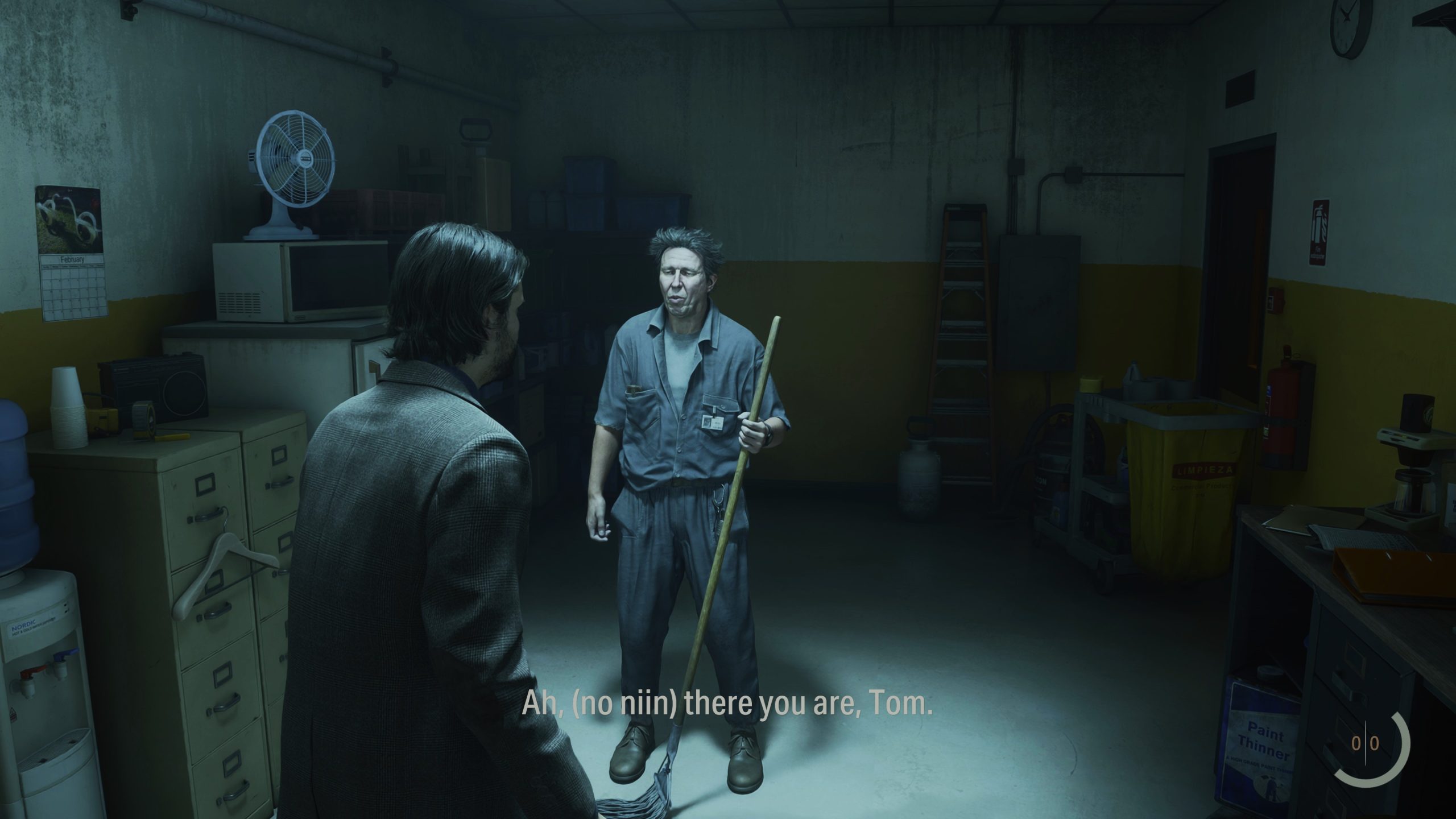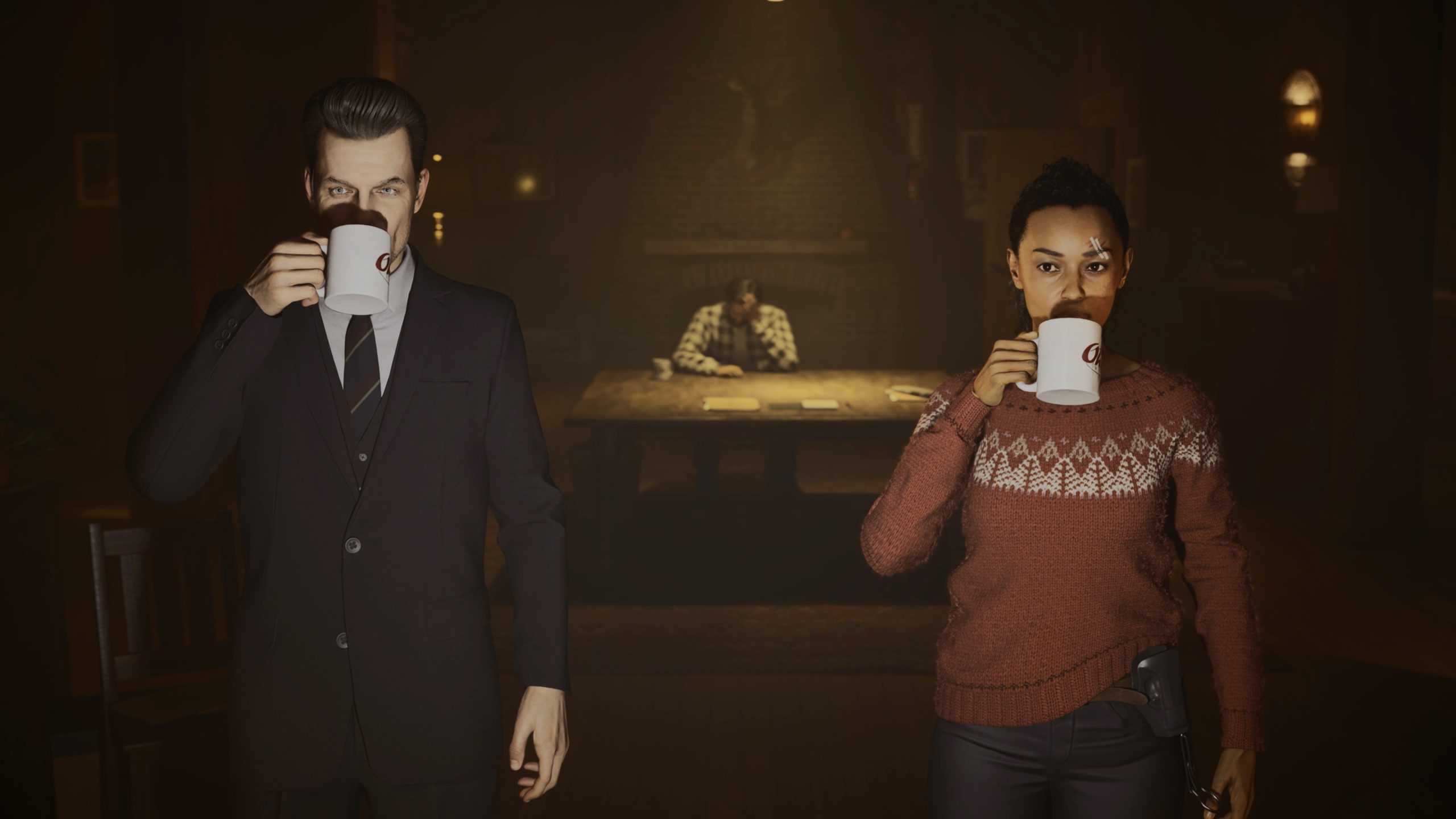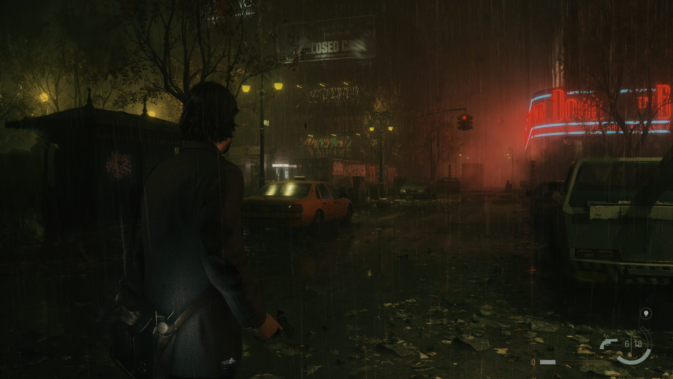 De nem csupán erre reflektál(hat) a játék cselekménye. Alex Casey a sötét helyen igazából Max Payne egy iterációja. Ugyanúgy James McCaffrey adja a karakterhez a hangját és ugyanúgy Sam Lake adja hozzá az arcát, miközben ugyanúgy a noirra jellemző pesszimista, depresszív tónussal monologizál. Láthatóan annyira fontos ez a játék a csapatnak, annyira magnum opusnak érzik, hogy minden korábbi munkájuk ebben egyesül még ilyen formában is (a Controlból ismert iroda megjelenése mellett).