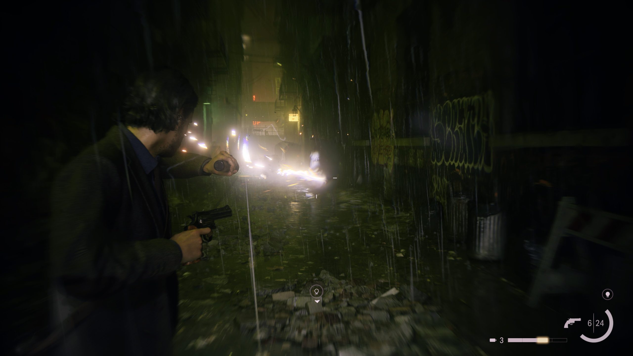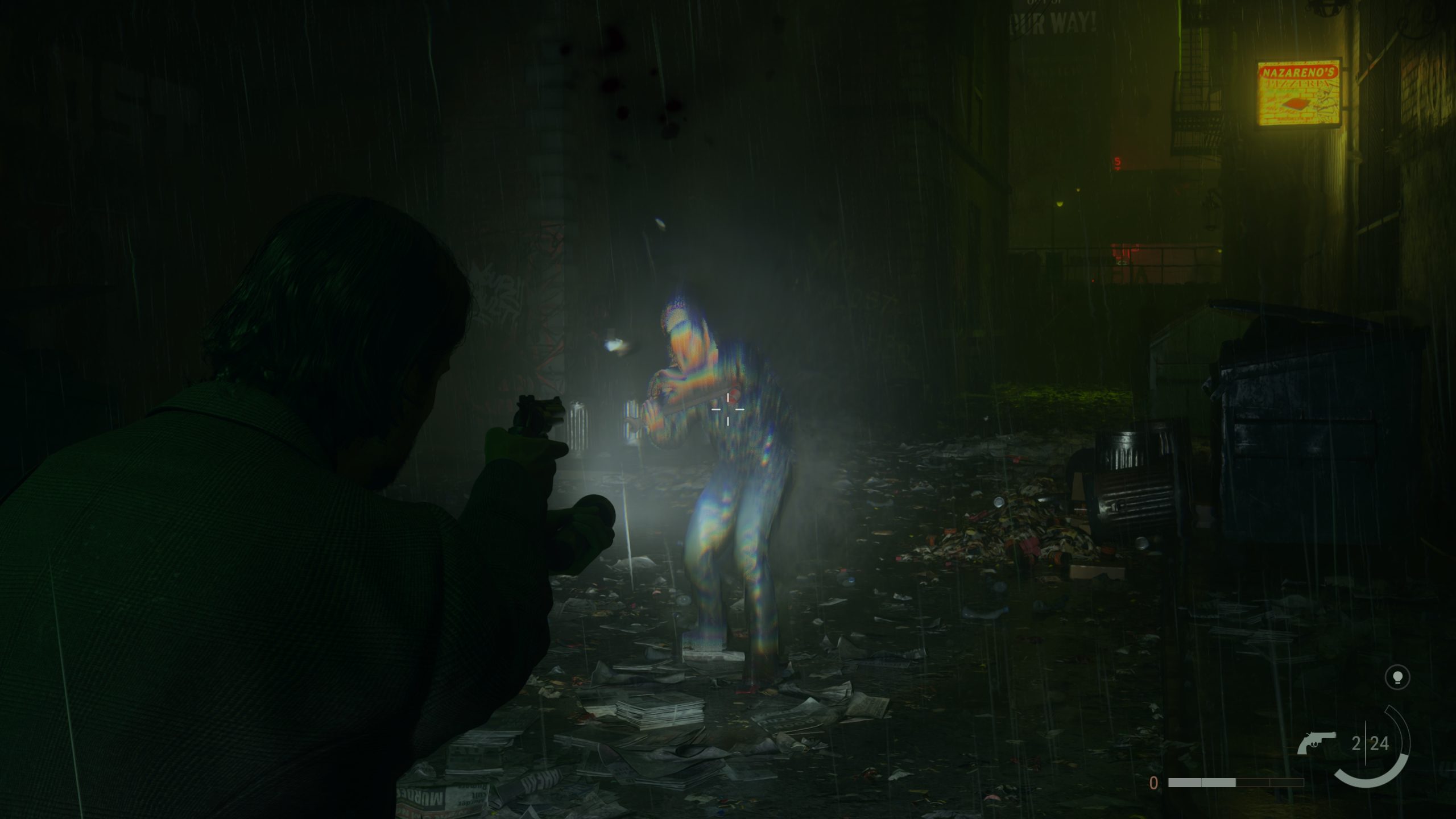 Ehhez kötve a gondolatot, azért is kapta túlélőhorror címkét a játék, mert a játékmenet nem dobálja hozzánk a töltényeket. Spórolnunk kell, de minimum jól céloznunk annak érdekében, hogy ne fogyjunk ki egy összetűzés közepén. Az Alan Wake 2 ezzel kissé nehezebb is lett, igaz, a töltény mennyiség – egyéb kellemetlenségek mellett – is inkább csak torzított módon fogott ki rajtam.