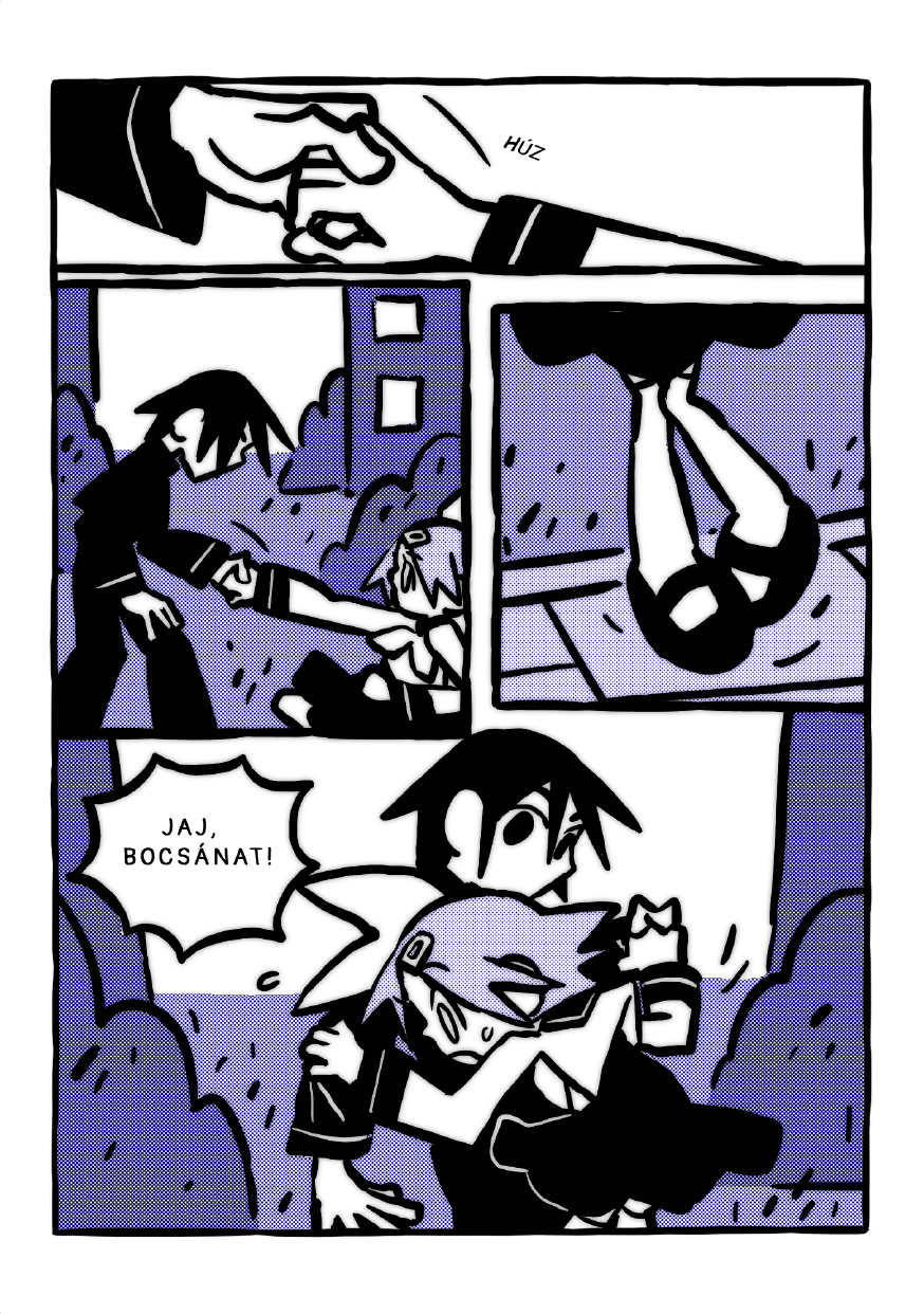 104 (!) oldalon annyi történik, hogy a két főszereplő összeismerkedik, és konstatálják, hogy a rendőrség béna, és kéne valamit csinálni. Mindössze ennyi. Azt sem tudjuk, mitől is kell félni igazán, még egy halvány utalást, ijesztő sejtetést sem kapunk erre nézve. Természetfeletti jelenségek, szellemek, esetleg démonok állnak a háttérben? Vagy egy ember viszi el a gyerekeket? Vagy valami egészen más van a dologban? Ráadásul Molnár Eszter képregénye még az ütős cliffhangerrel is adós marad.