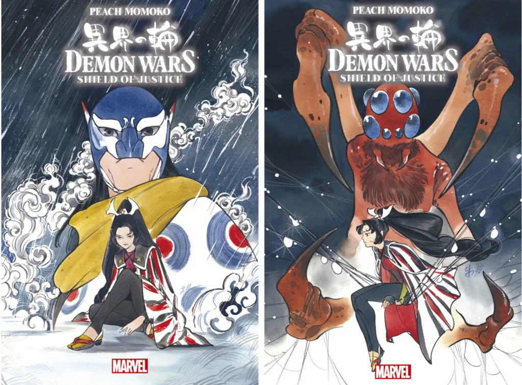 A Marvel-karakterek tekintetében pedig az előző részhez hasonlóan kreatív. Akadnak könnyen beazonosítható figurák, mint Fekete párduc vagy Pókember, de a többi szuperhős esetében ezúttal nehezebb dolgunk lesz. Ami egyrészt teljesen elszakít a Marvel univerzumtól, végleg japán mesévé változtatva Démon-Polgárháború történetét, másrészt ismét azt bizonyítja, hogy ez a képregény vizuálisan bátrabb. A szamurájpáncél darabjaiból összeálló Vasember imponáló és erőt parancsoló, de ennél sokkal nehezebb japán figurák mögé bújnak a Marvel szuperhősei, amit öröm fejtegetni. Ez utóbbiban segít a kötet végén található útmutató a mitológiai lényekhez. Mindemellett olyan apró gegek is elférnek, mint hogy a Momokoverzum Pókembere nem tud beszélni, szemben a jól ismert Peter Parkerrel, akinek be nem áll a szája.