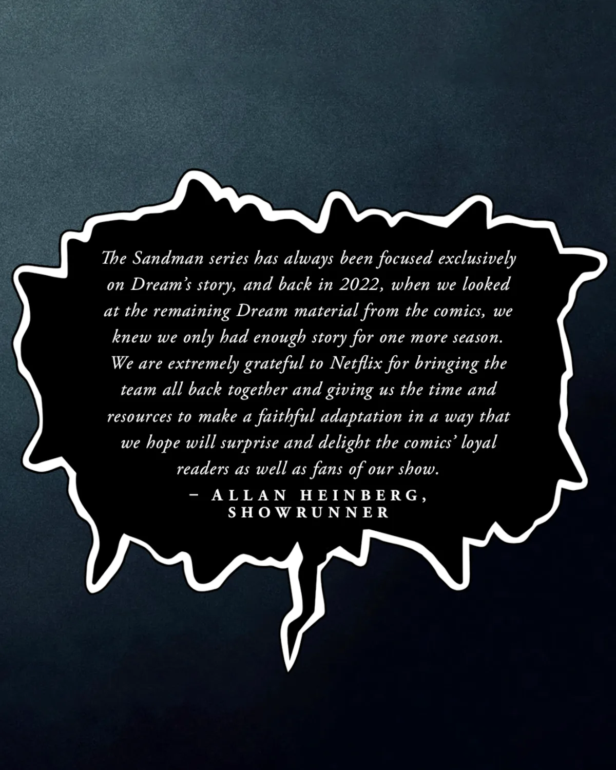 Erre magyarázat a showrunnertől, Alan Heinbergtől is érkezett, aki úgy érvel, hogy ők csak Álom-történetével terveztek, és az az új évadban le tud zárulni. Ezenfelül megköszöni a Netflix bizalmát, akik minden lehető eszközzel segítették a képregényhű adaptáció elkészültét.