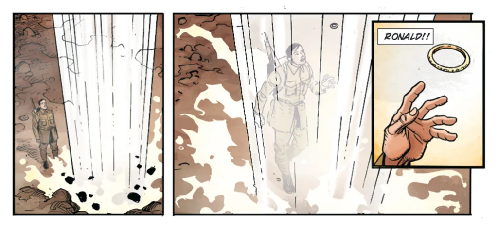 A téma szempontjából fontos, az író személyiségét formáló események krónikáját olvashatjuk Willy Duraffourg és Giancarlo Caracuzzo eredetileg 2019-ben megjelent, Tolkien – Fény a sötétségben című életrajzi képregényében, amely a Multiverzum kiadó jóvoltából immár magyarul is elérhető.