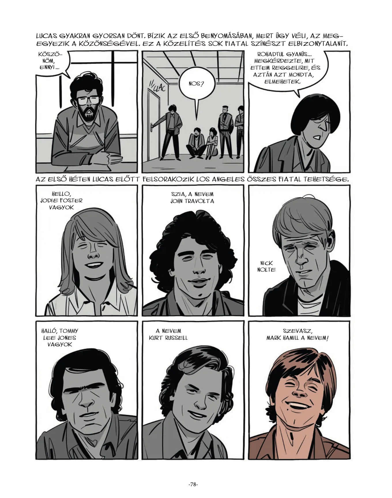 Laurent Hopman író érdekes (részben elképzelt, de valódi forrásokon alapuló) dialógusokkal és mozzanatokkal megtűzdelve halad végig már-már megállíthatatlan lendülettel Lucas karrierjén. Az írás erőssége, hogy nemigen foglalkozik a sallanggal, és, még ha elnagyolva is, de igyekszik egy átfogó képet adni azokról a hangulatokról, eseményekről és személyekről, amelyek meghatározták ezt az életutat. Érdekes olvasni arról, ahogy Lucas már gyerekként a Flash Gordon és a Doctor Doom-képregényekre volt ráállva; vagy ahogy szembement aztán a filmkészítési hagyományokkal. Izgalmas megtudni, miként választotta ki Mark Hamillt, Carrie Fishert és Harrison Fordot Luke, Leia és Han Solo szerepire; vagy miként alapította meg az Industrial Light & Magicet és eszközölt formabontó új technikai megoldásokat.; A történet része azon szupercsapat összeállása, akik nem csupán megvalósították a filmet, de szembeszálltak a 20th Century Fox abszurd követeléseivel is.